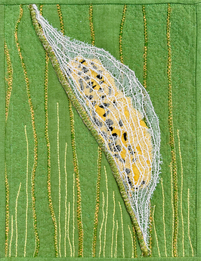 Journal quilts are made every month for a year as part of a challenge set by the Contemporary Quilt Group of the British Isles, as a platform to experiment and try out techniques and ideas. Often the ideas generated with these little experimental pieces lead to larger pieces of work.